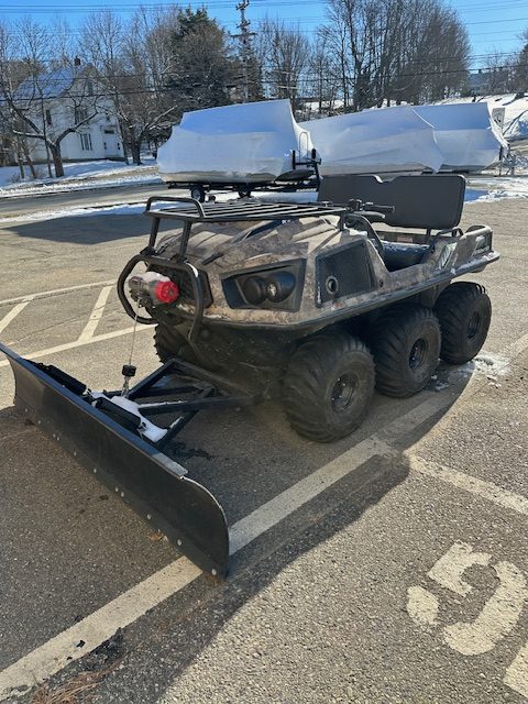 DEMO 2022 Argo Frontier 700 Scout 6×6 W/ Plow, this unit only has 52 miles and still has factory warranty, fuel injected 700CC easy start engine, this beast is sure to get your driveway plowed or get you to you favorite hunting/fishing spot, factory winch and push bar with this awesome camo exterior. $21900 SALE PRICE $13995